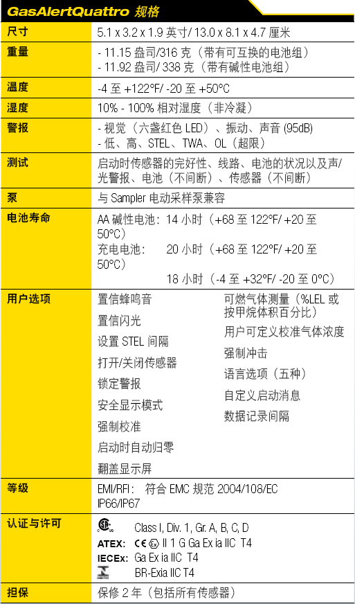 GasAlertQuattro 的其他特點(diǎn):