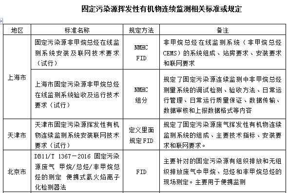 我國在揮發(fā)性有機物監(jiān)測方面也出臺了一系列監(jiān)測標(biāo)準(zhǔn)。各地針對固定污染源揮發(fā)行有機物連續(xù)監(jiān)測相繼出臺了技術(shù)規(guī)范。