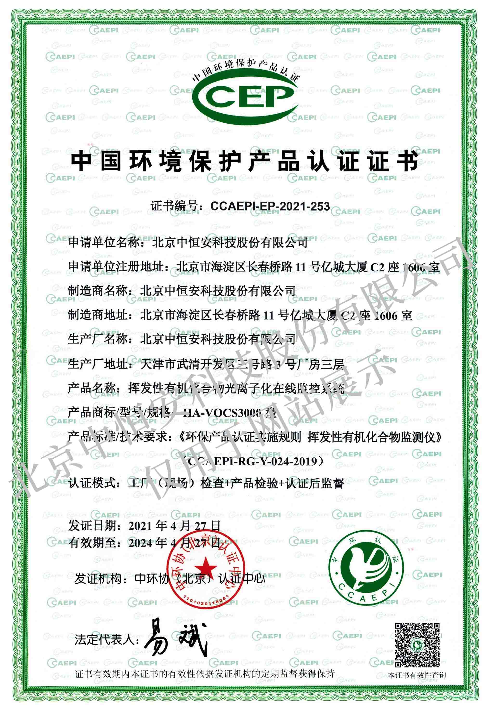 產(chǎn)品已取CCEP環(huán)保認證和計量檢測報告