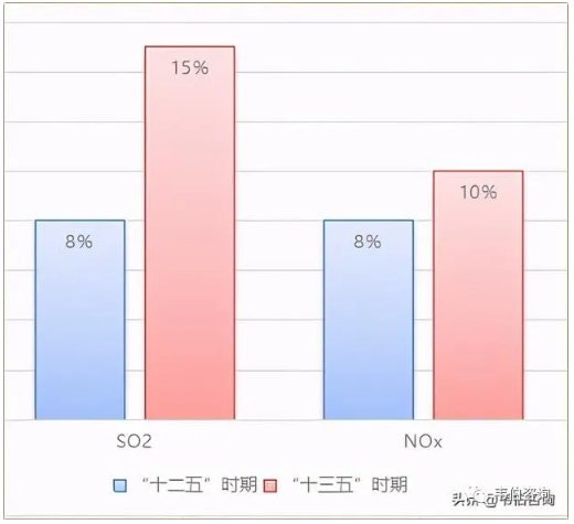 圖表 3:“十二五”和“十三五”時(shí)期SO2、NOx減排目標(biāo)對(duì)比