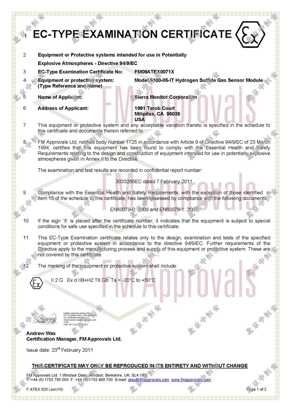 (5)較大范圍,零漂移,線性,分辨率,和傳感器的壽命,還沒(méi)有得到驗(yàn)證的FM批準(zhǔn)。